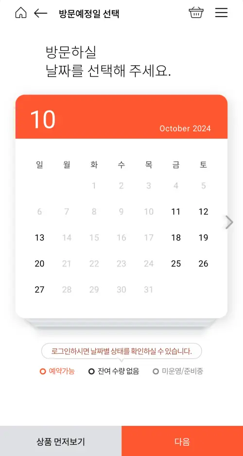 5. 방문하실 날짜와 시간을 선택하여 예약합니다.