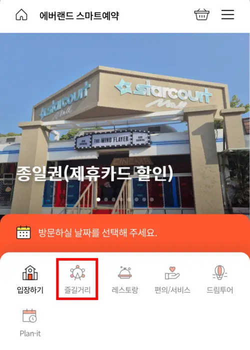 2. 스마트 예약에서 즐길거리를 선택합니다.