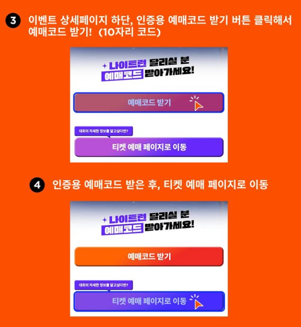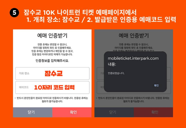 참여 방법은 우리은행 won앱에 접속 > 나이트런 배너를 클릭 > 이벤트 페이지에서 예매 코드 받기 버튼 클릭 > 예매 코드를 받은 후 티켓 예매페이지에서 [개최장소 : 잠수교, 발급받은 인증 예매코드] 입력하여 예매 인증합니다.
