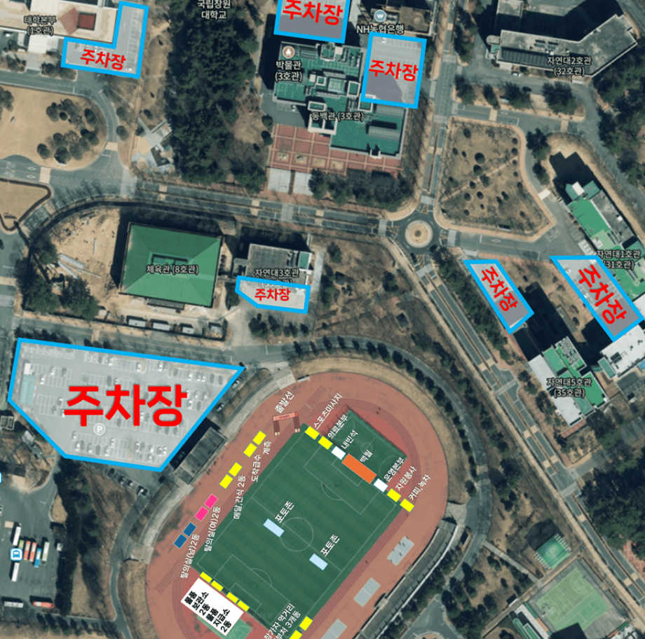 창원대 벚꽃마라톤 주차장은 창원대 내부 주차장 이용이 가능하며, 행사 당일에는 혼잡이 예상되기 때문에 대중교통 이용을 권해드립니다.