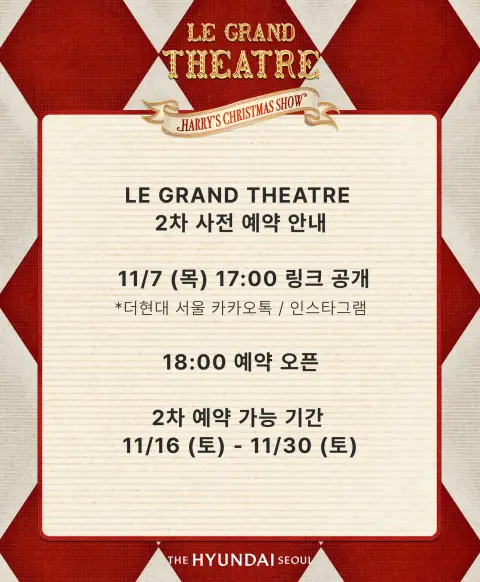 2024 더현대 크리스마스는 더현대 서울 5층에 크리스마스 장식으로 서커스 마을처럼 꾸며진 공간으로 많은 분들이 찾아오고 있습니다. 더현대 크리스마스 예약은 사전예약과 현장웨이팅으로 입장이 가능합니다. 더현대 크리스마스 예약 2차 예약 일정에 대해서 알아보겠습니다.