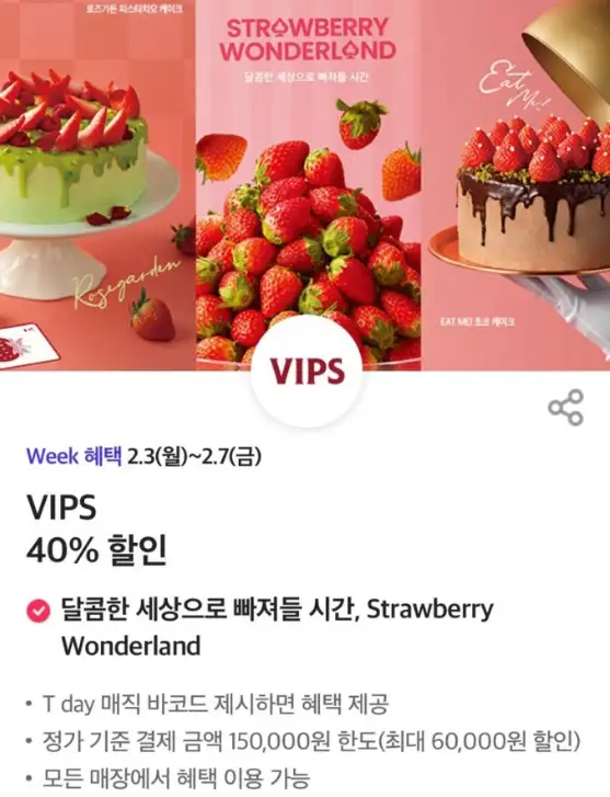 SKT 이용하시는 분들은 2월 3일(월)부터 2월 7일(금)까지 5일 동안 T멤버십에서 최대 40% 할인쿠폰을 받을 수 있습니다.