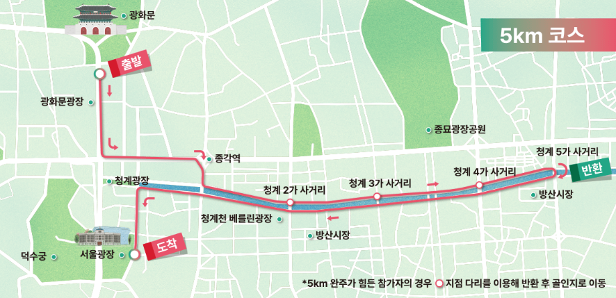 - 코스 : 광화문 광장(출발)~서울광장(도착) 약 5km