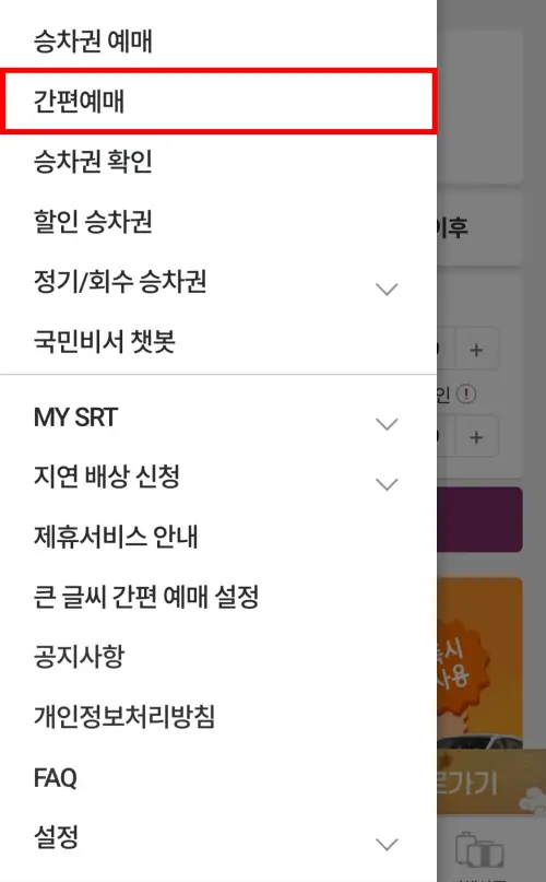 SRT 간편 예매