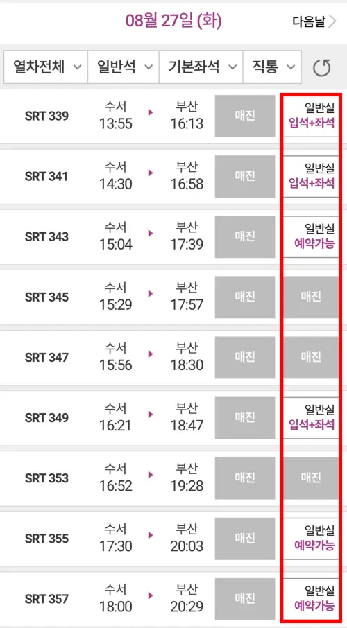 SRT 예약대기